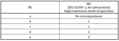 控制系統安全相關部件在預期條件下執行安全功能的能力分為5級,稱之為性能等級(PL)。這些性能等級由每小時發生危險失效的概率來定義。